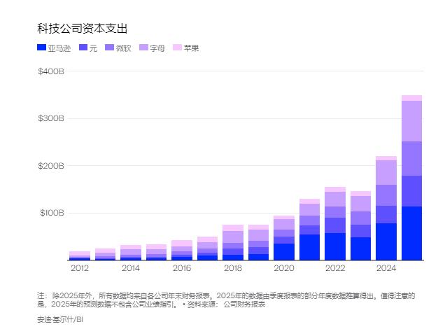 今年以来,投资者对大型科技公司在人工智能领域的巨额支出越来越感到担忧。整个2025年,亚马逊、meta、微软、alphabet和苹果预计在人工智能领域投入了约3490亿美元。