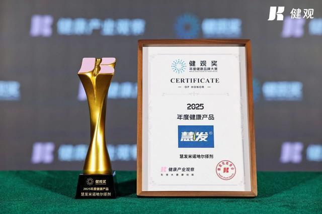 鲁南制药集团电商负责人受邀出席本次活动。会上,备受关注的健观奖“机构奖·年度健康营销案例”及“产品奖·年度健康产品”两大奖项正式公布。鲁南制药凭借特色营销案例“舒尔佳®健康减肥补偿计划”荣获“健观奖 2025年度健康营销案例”,旗下新品慧发®米诺地尔搽剂摘得“健观奖 2025年度健康产品”奖项。