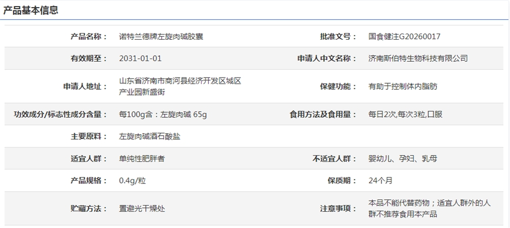 诺特兰德近年来在营养健康市场较为活跃,本次其左旋肉碱胶囊获批,保健功能为“有助于控制体内脂肪”,注册类保健食品审评要求高、周期长,诺特兰德此次走向注册,反映出其向产业纵深布局的长期策略。