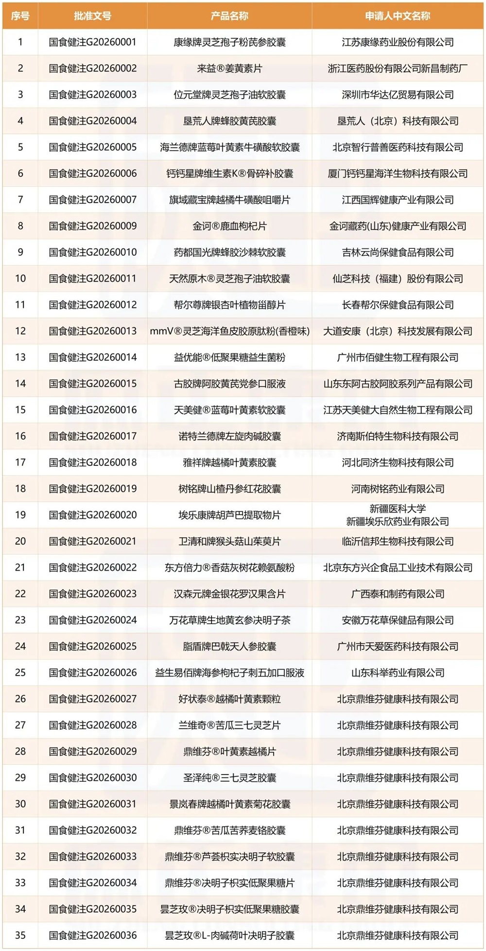截至2026年1月30日, 庶正康讯通过国家市场监督管理总局网站查询显示,已批准的批号为2026年的国产注册保健食品共发布了35个,进口保健食品1个。